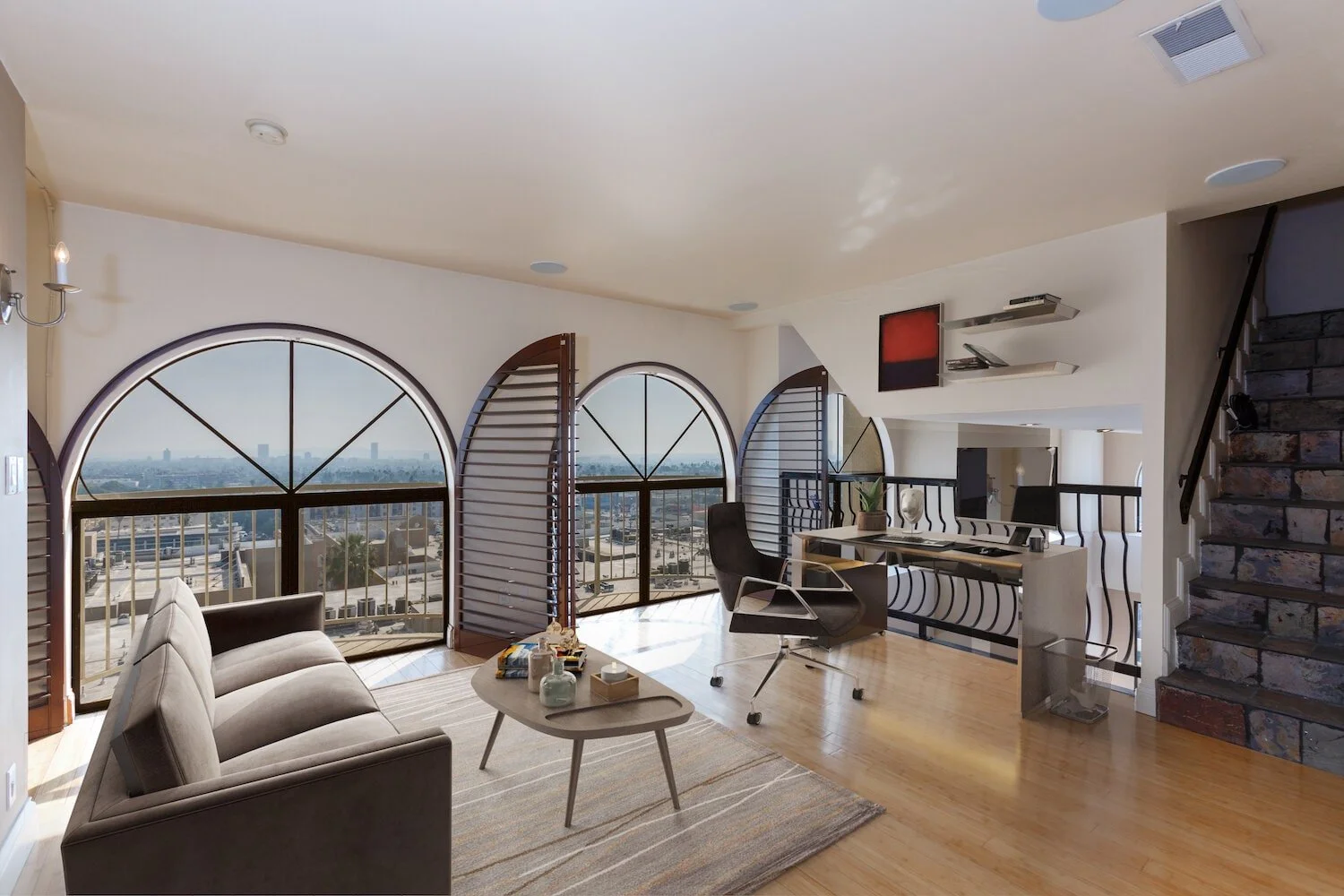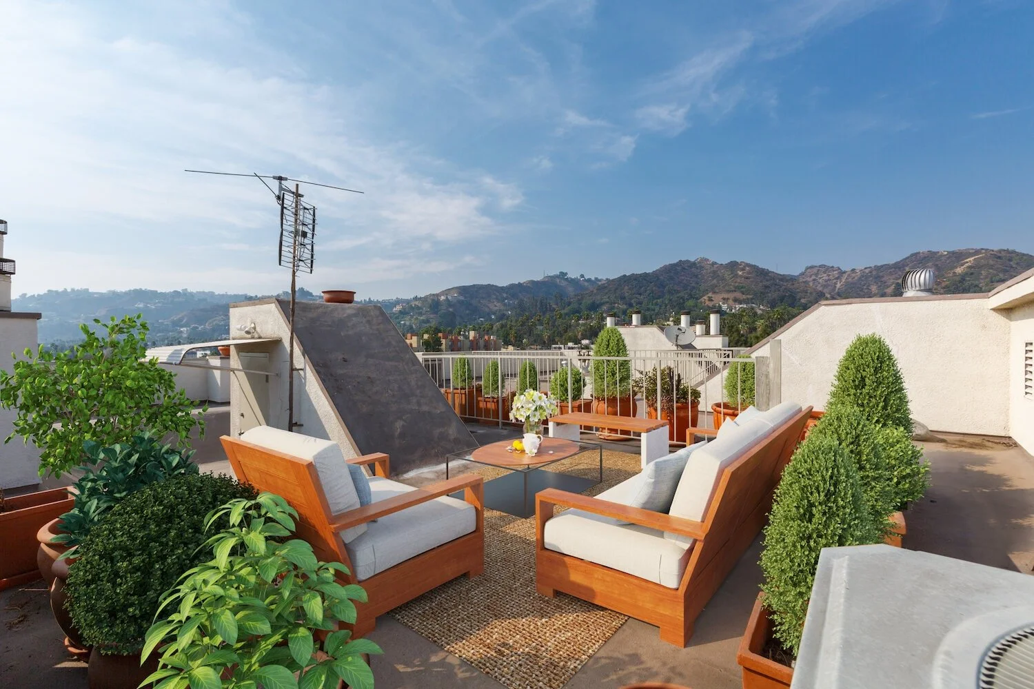 Perched above the city showcasing panoramic views from the Hollywood Hills to the Downtown LA skyline to the Pacific Ocean, this two-story penthouse offers an incredible opportunity to live in the heart of LA while enjoying an oversized private rooftop terrace. In the unit, you'll enjoy soaring living room ceilings and towering arched windows offering breathtaking views. Two downstairs bedrooms are positioned on opposite sides of the floor plan to provide privacy for families or guests. Upstairs, you'll discover a loft perfect for a third bedroom, office, workout space, media room, or meditation retreat with direct access to the sparkling rooftop pool, spa, and sundeck. Located just steps from Runyon Canyon and nearby all the popular shops and restaurants of the iconic Sunset Strip in Hollywood and nearby Sunset Plaza, this rare offering is full of potential and just waiting to become someone's dream home.