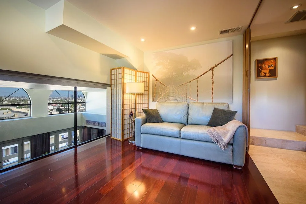 Do not miss this one-of-a-kind luxury penthouse that showcases an oversized private rooftop terrace with panoramic 360° views. This sun-drenched terrace also provides direct access to a sparkling rooftop, heated pool, and spa. The bright, corner unit has been tastefully redesigned with high-end custom finishes throughout and custom cabinetry to maximize space. The kitchen spills into a living room with soaring 17-foot vaulted ceilings leading to glass doors that open to balconies with breathtaking views from downtown to the Pacific Ocean. The master suite includes a large walk-in closet and pristine bathroom complete with a redesigned shower, recessed lighting, and floating vanity. Similar improvements have been made to the guest bedroom and bathroom. A true walker's paradise, you'll enjoy being just a stone's throw away from Runyon Canyon and nearby all of the fantastic restaurants, shops, and bars that Hollywood has to offer!