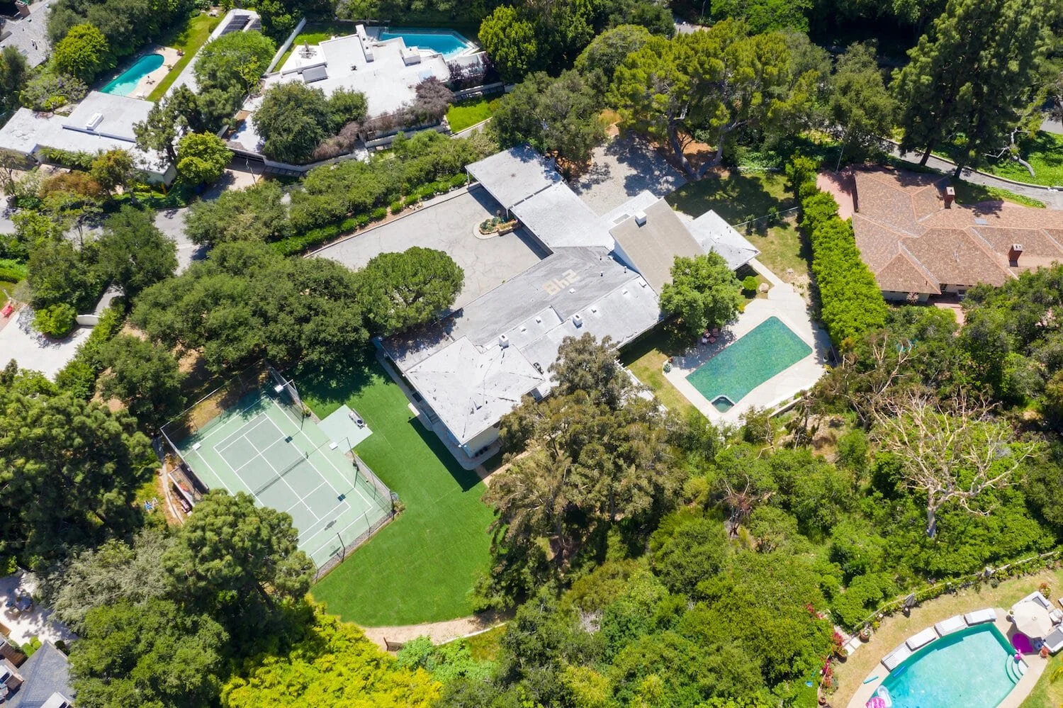 Perched just above Sunset in Lower Bel-Air, this gated 1.43 acre estate with approx. 41,000 sq ft of flat land is a must-see. Enjoy complete privacy and seclusion surrounded by mature trees with a large grassy area. Stunning views of the ocean, Catalina Island, the marina, and city lights. Perfect match for a developer or end-user seeking a Bel-Air trophy estate. The compound offers an unmatchable lifestyle, privacy, sun-drenched pool, paddle tennis court, gym/pool cabana, 20+ car off-street parking – an entertainer’s delight! A true Frank Sinatra style, Mid-Century home waiting for your personal touch. Just a few houses from a $45M sale. This is the tranquil hideaway that your buyer needs!